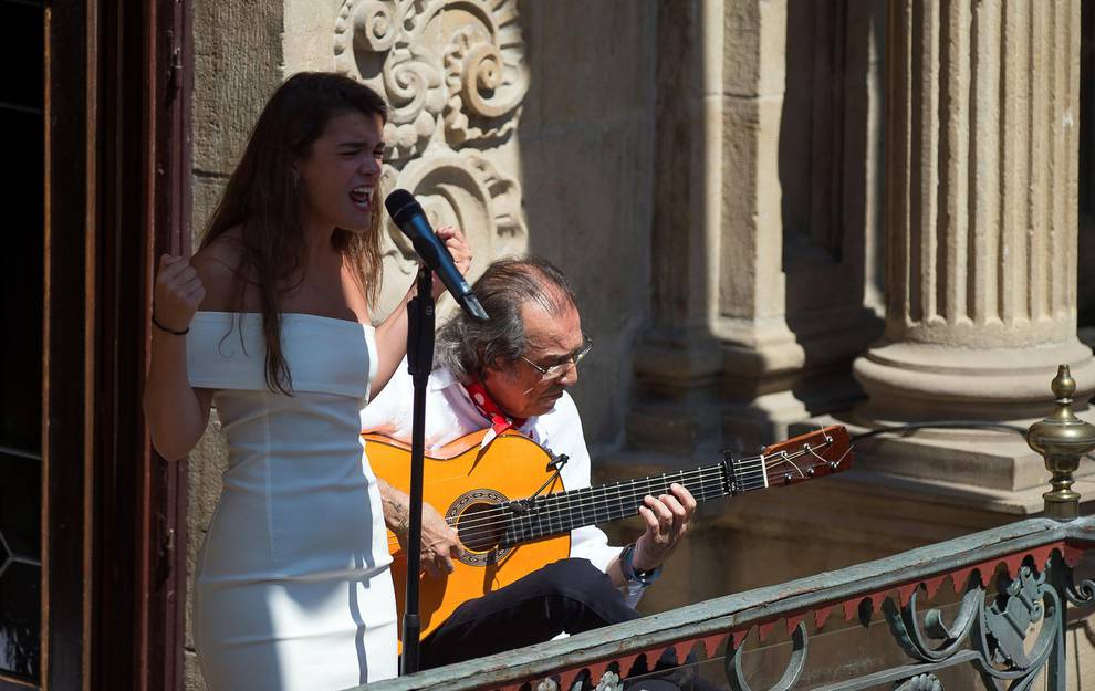 Amaia Romero ha sido la encargada de dar el pistoletazo de salida a la 5ª edición del festival 'Flamenco on Fire', y lo ha hecho con un recital desde los balcones del Ayuntamiento de Pamplona. La ganadora de 'Operación Triunfo' ha estado acompañada por el guitarrista granadino Pepe Habichuela, el madrileño José Miguel Carmona y la sevillana Marta Robles.